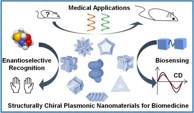 受到自然界中手性结构的启发,研究人员探索在纳米尺度构建具有可调不对称性的人工手性结构体系,以实现对生物系统手性相互作用的精准调控与模拟。手性光学纳米材料通过几何结构引入不对称性,从而在介观层面产生可观测的手性几何结构和手性光学响应的纳米结构。其中,具有本征手性结构的等离激元纳米材料因其显著增强的手性光学活性与手性稳定性,在生物医学领域展现出巨大应用潜力。作者概述了手性等离激元纳米材料可控合成的最新进展,及其在依赖手性的对映选择性识别、生物传感与治疗干预方面的生物医学应用。作者重点探讨了具有可控合成特性的手性等离激元纳米材料的最新研究进展,特别是具有本征结构手性的材料体系。此外,作者还讨论了此类材料在生物医学领域的新兴应用,分析了其面临的关键挑战和未来的发展趋势,为深入理解人工手性纳米材料和生物系统间的相互作用提供了新的理论视角与研究思路。该论文为团队在医用纤维材料等领域的研究提供了科学依据。