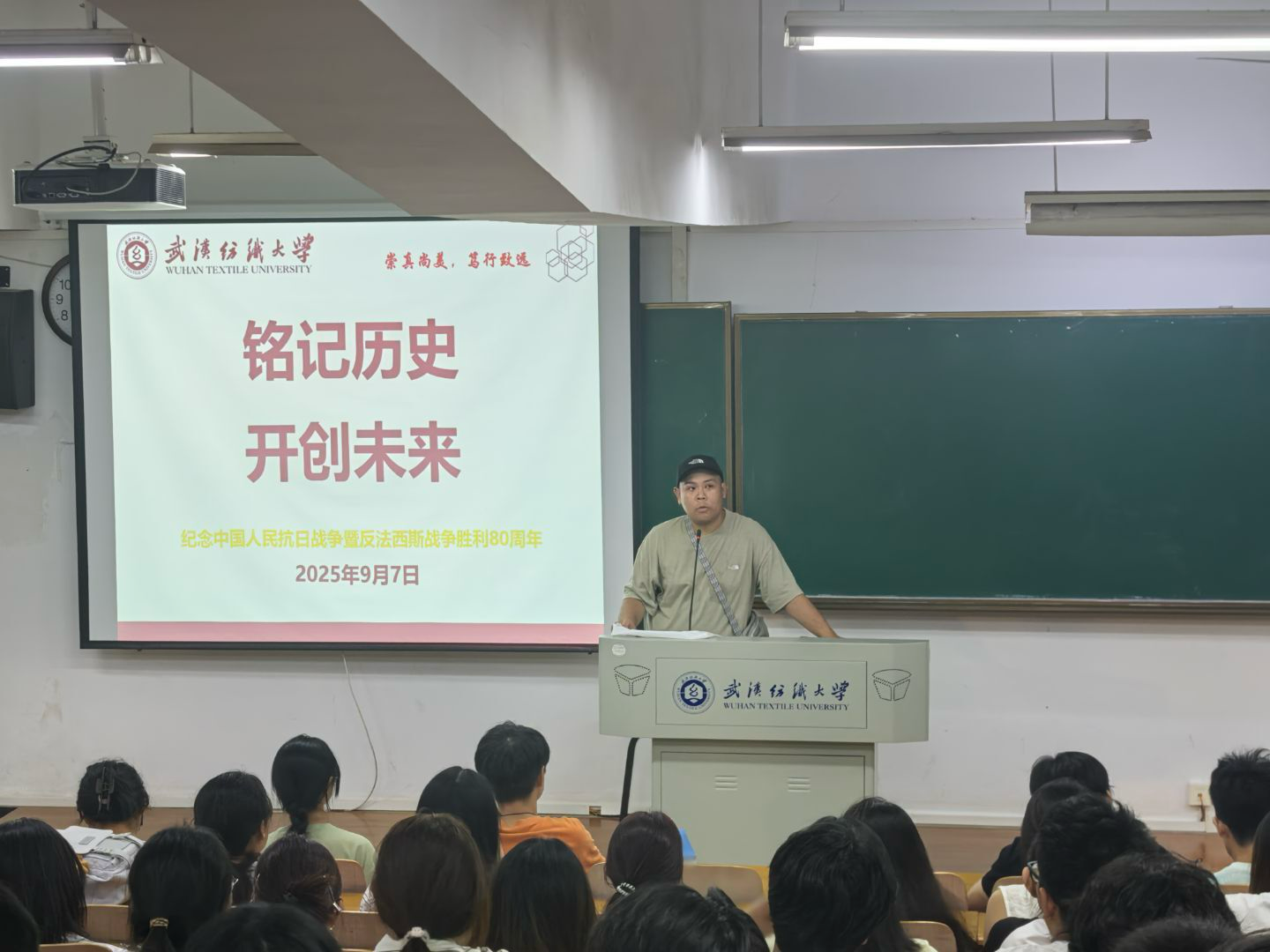 班会还组织了“铭记历史 开创未来”主题学习,集体学习了习近平总书记在纪念中国人民抗日战争暨世界反法西斯战争胜利80周年大会上的重要讲话。辅导员引导学生弘扬抗战精神,增强爱国情怀,为强国建设贡献力量。