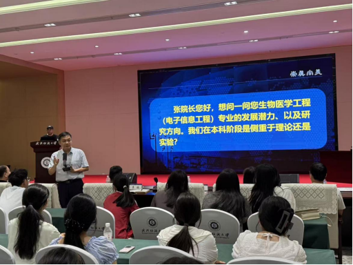 9月28日,学院教师张仪、王小书主持了新生专业研讨交流会。交流会不仅宏观介绍了生物工程、医学装备等专业的培养方案、核心课程与发展前沿,更深入剖析了各专业领域未来的产业趋势与职业前景。两位老师结合往届优秀毕业生的成长案例,强调了基础学科学习与创新能力培养的重要性,并在互动环节中,对新生们提出的关于“双学位辅修”、“科研项目参与”、“实习与考研平衡”等具体问题给予了详尽解答,现场气氛热烈,为新生们拨开了专业学习的迷雾,点燃了求知探索的热情。