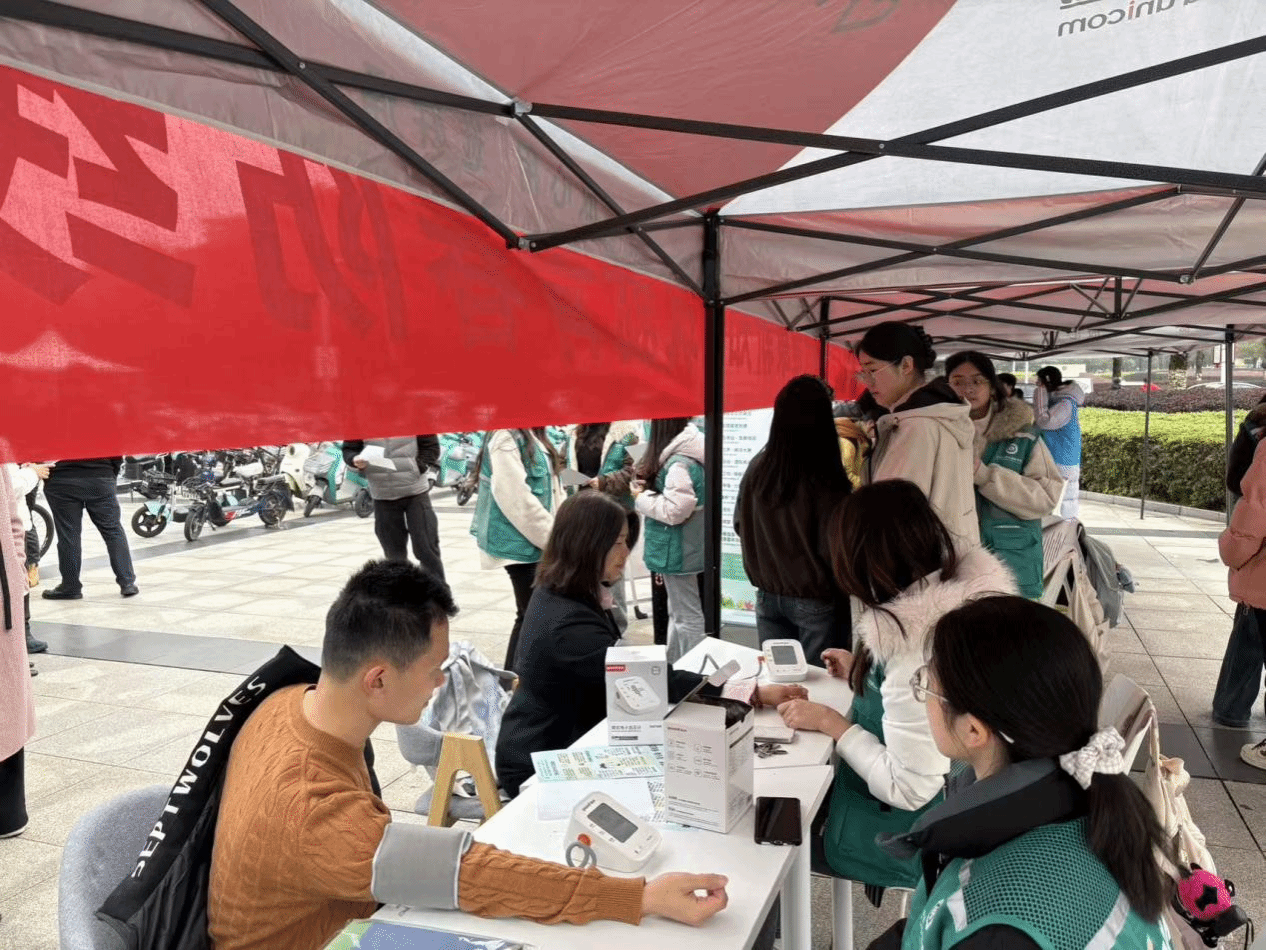 贴心服务暖人心,健康关怀零距离。“健康加油站”前人气满满,志愿者们为师生测量血压,现场讲解血压正常值范围与日常监测技巧,结合测量数据给出个性化健康建议,让专业医疗知识变得通俗易懂,让健康关怀直抵人心。不少同学在浓厚的志愿氛围与积极的活动体验感召下,主动扫码了解社团信息,积极报名加入社团队伍,希望将健康知识与“善爱我”的积极心态传递给更多人。